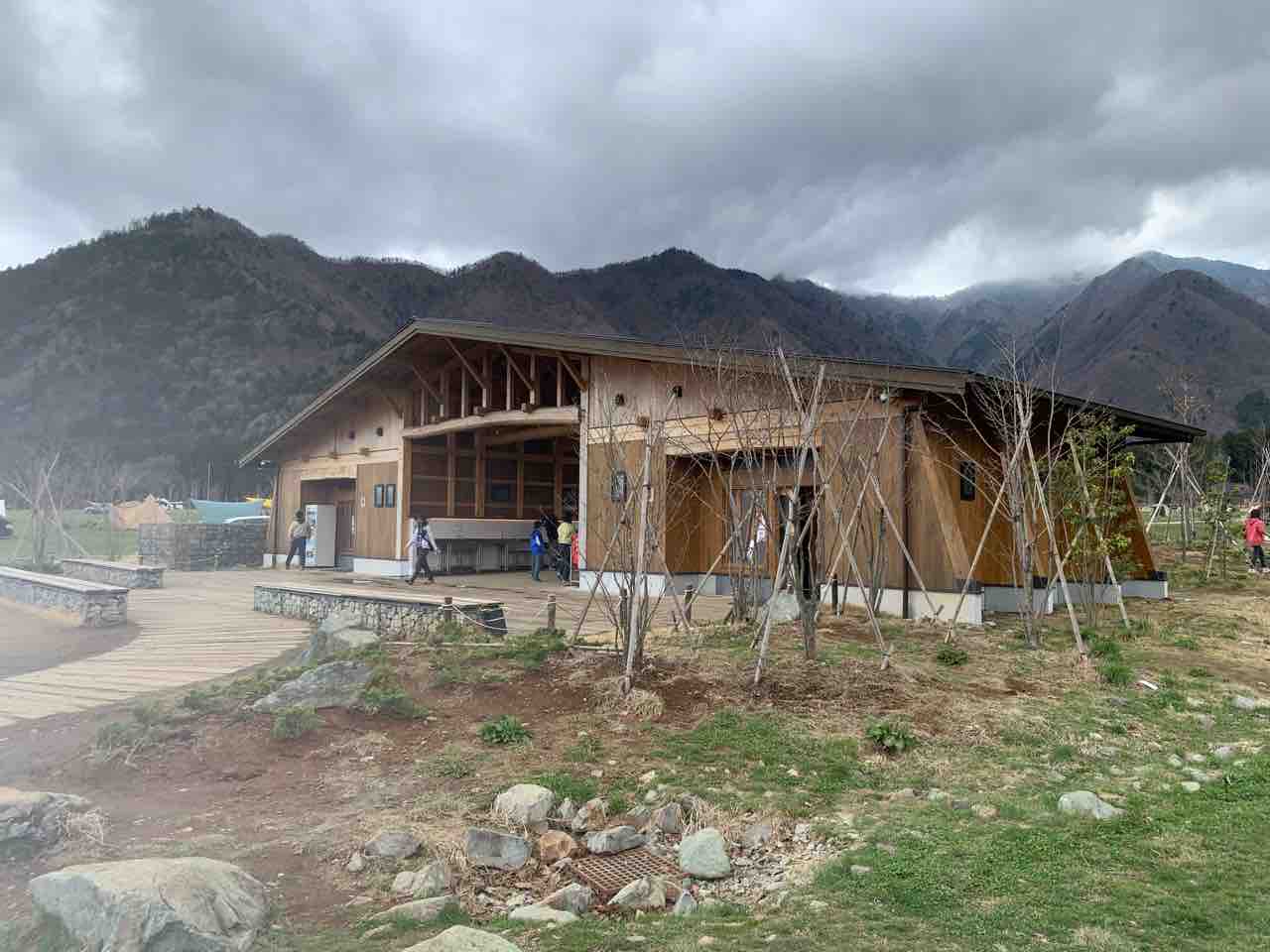 手前の建物は炊事棟でテーブルもあるから、騒がなければ食事もOKみたい。